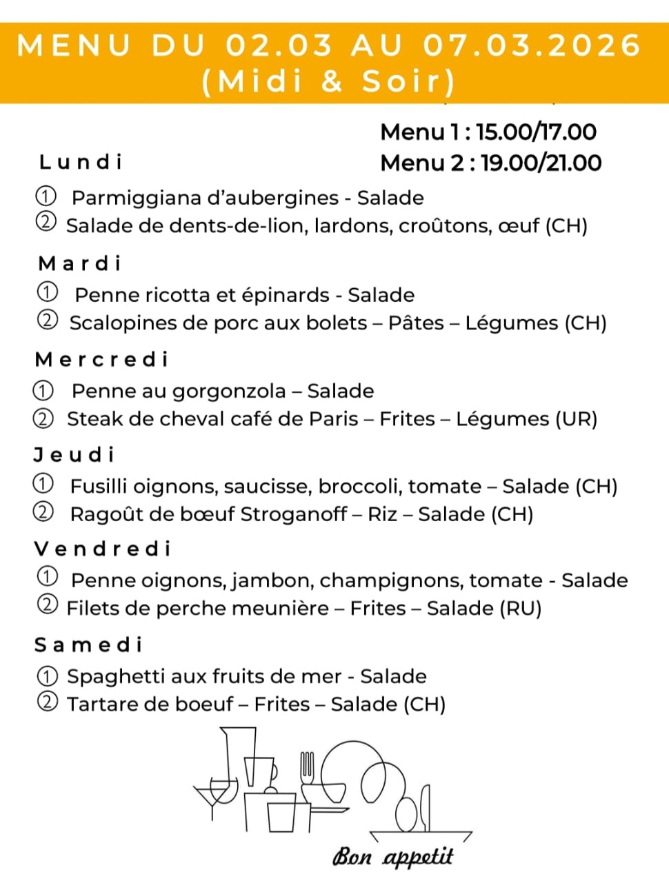 Le menu de la semaine