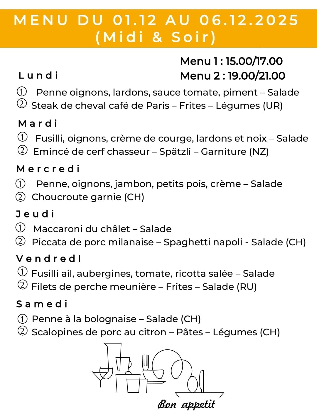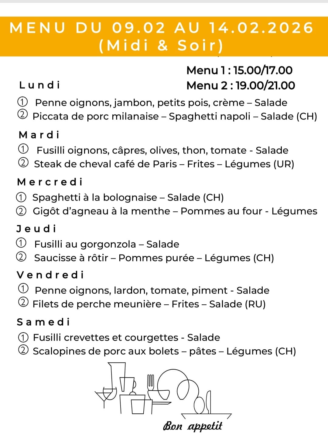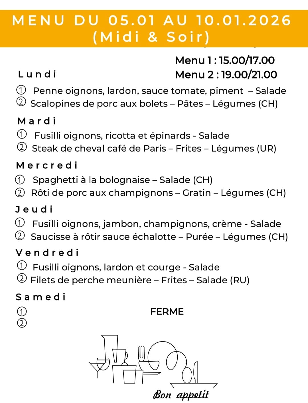 Le menu de la semaine